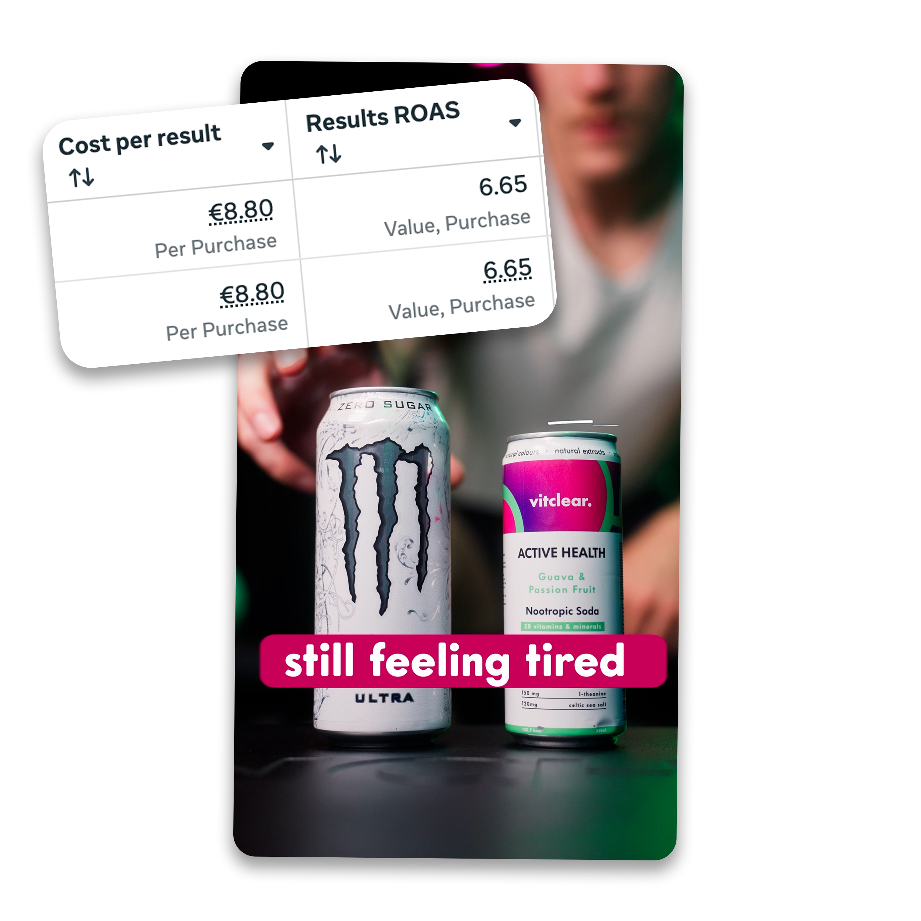 We worked with Vitclear increase their DTC sales using ProUGC, scripts that convert and a seperate campaign for each product flavour.